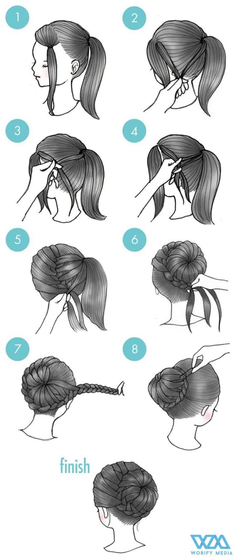 Here are some simple steps which you need to follow for making a fluffy high bun in a few minutes. Just look at the picture and follow the steps.