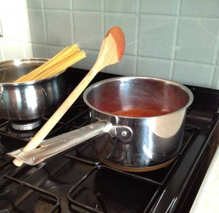 We use these holes to hang the utensils, but we can also attach the spoons while cooking to avoid our appliances from getting messy.