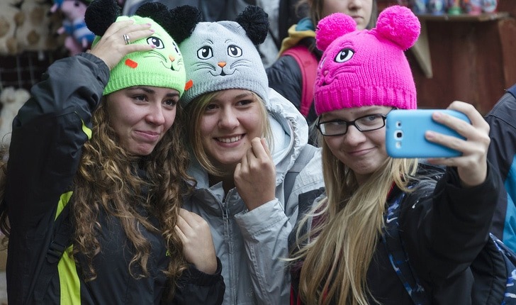 Little pompoms on the winter caps are not only an extra touch of cuteness