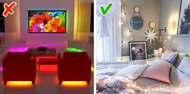 Unless you are planning to make your house a bar or a dance club, you should not add those fancy neon lights to every corner of your home. You can always add some temporary hanging garlands for parties or to create a decorative tone for your house.