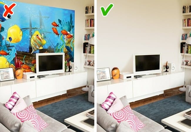Printed wallpapers, photos of animals, optical illusions, charts, and the jumbled stuff, these are only good for a hostel room. However, when somebody enters your house and finds cheap stuff attached to your walls and ceilings, it will attract much attention and cast doubt on your choices. Decorate your rooms with traditional designs that will blend with everything inside them.