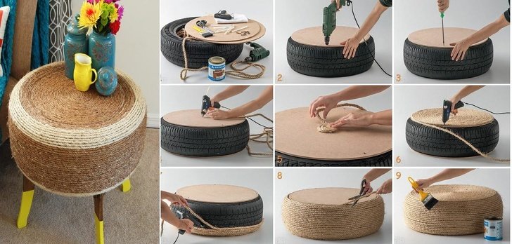 Make the pouf chair with the help of an old car tire.