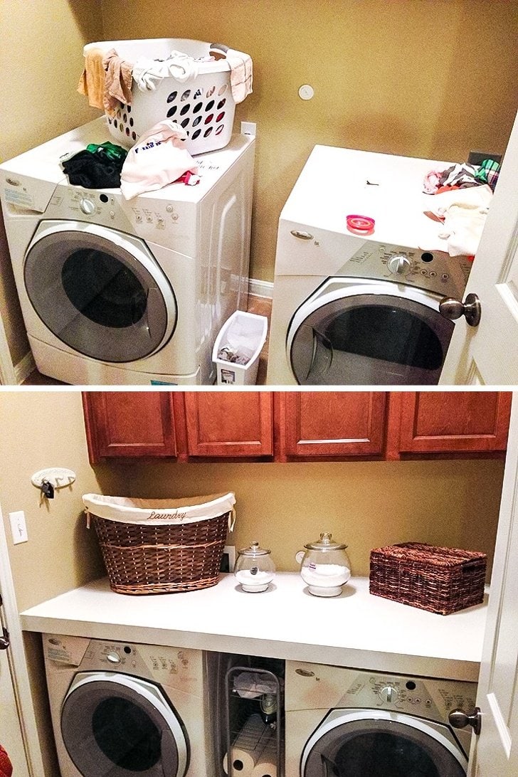 You may always lack the shelving and drawers in the laundry room. But the fact is there is enough space that you can use it. We always recommend you to install the countertop such that you will be able to put the different baskets and the jars on and then even get them organized by yourself.
