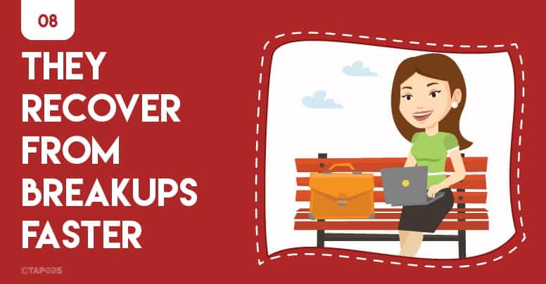 That’s right, fellas! Studies show that women because they tend to feel emotions in real time, can move on from relationship faster than men, who are more likely to feel the aftershocks of a breakup on a much later time.