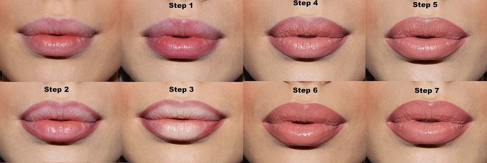 After doing that, moisturize your lips and make an outline of them with a lip liner. Make sure to use a color which is same as your lip color. Blend the color with concealer and apply a bit of lip gloss. Finally, you may apply a highlighter to give an attractive finish to the makeup effect.This will also give a glowy and dewy effect to your lips.