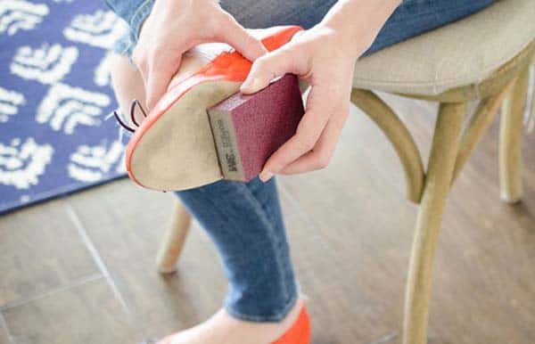 Rub sandpaper at the base of your heels to maintain fiction with the floor and avoid any slipping mishaps.