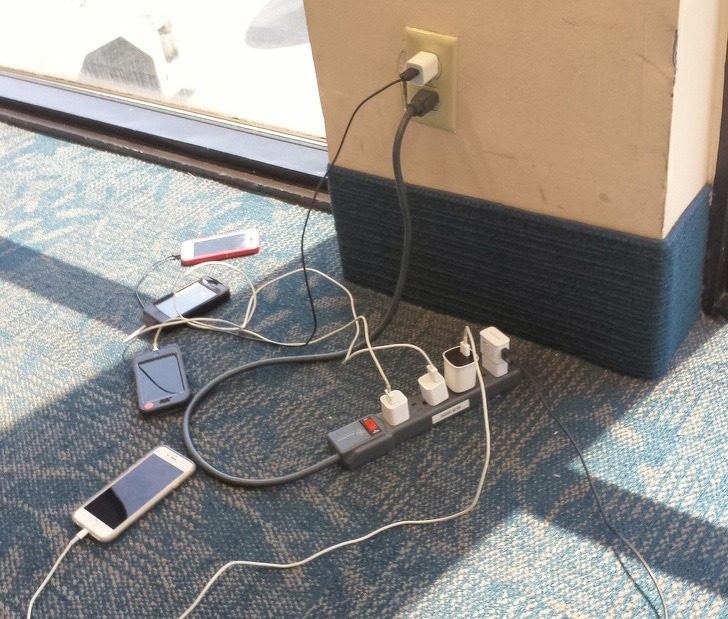 This is totally insane and one of the hilarious pictures. The guy is the hero of the airport. Look at him he is carrying an extension plug box along with him. Also, he is having a lot of mobile phones along with the charger. He wants to get it to charge them to the fullest so that he can keep them along with him while playing games sitting in the plane. Hats off to him to think a lot.