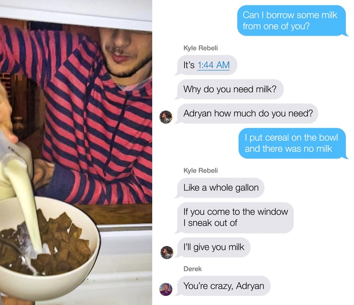 The man in the picture is Friend man. Well, the man is asking for the milk from his friend. In actual, you can see that how crazily he is asking for the fluid at 1.44 AM. He is a common man like us.