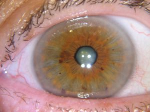 - A yellowish spot near the iris