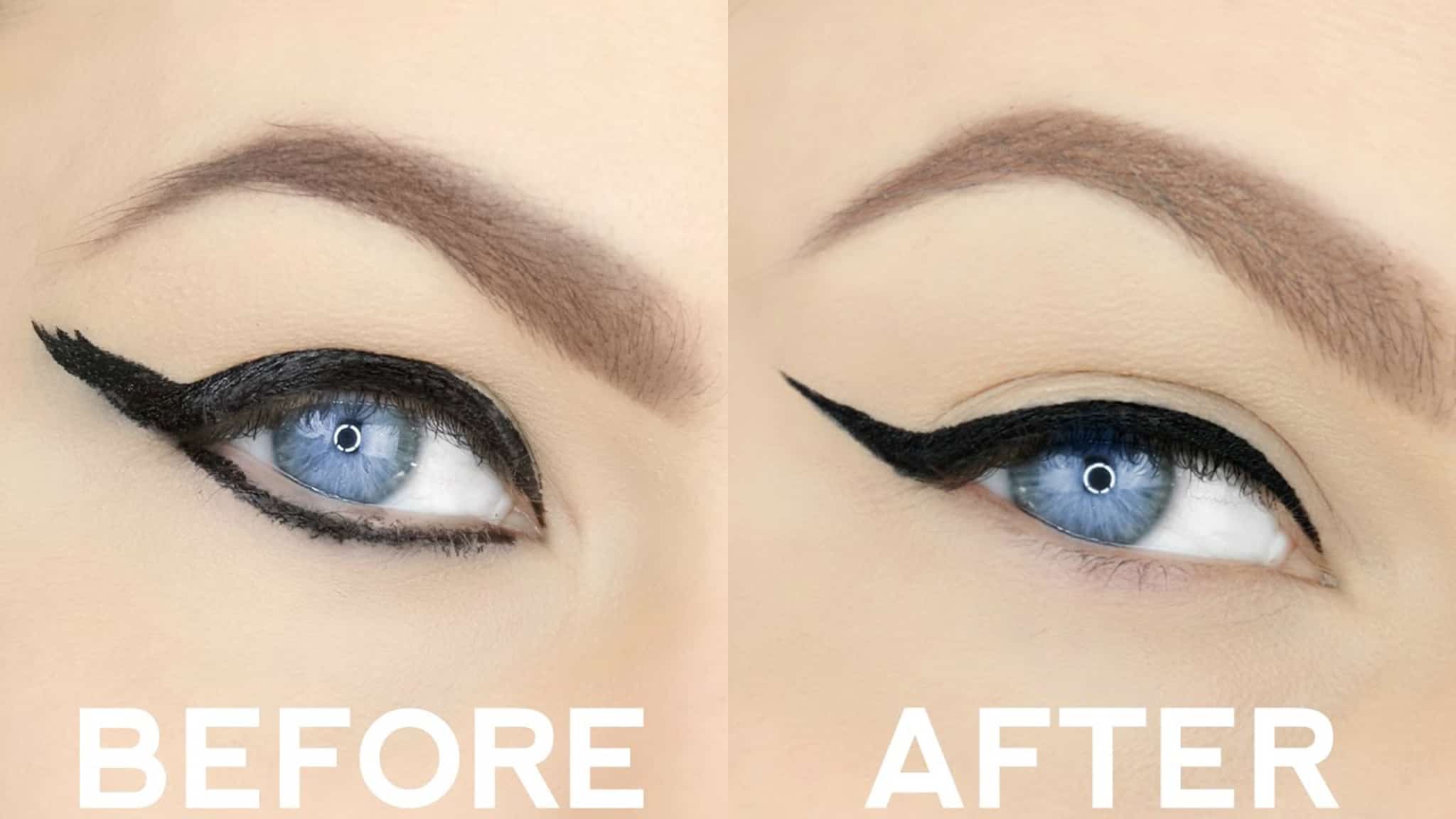 The most common issue in applying winged eyeliner is not getting a perfect stroke at the edge. Also, never apply the liquid eyeliner on the lower eyelids.