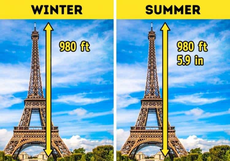 The pride of Paris, Eiffel Tower ‘s height increases by 5.9 inches in every summer due to expansion.