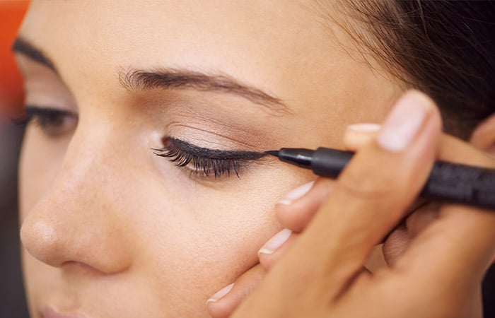 While applying your liner, try not to pull the side of your eye as tempting as it might feel. It extends your skin, and even though it may look like you’re drawing it correctly, the liner will end up looking slanted when you leave it.