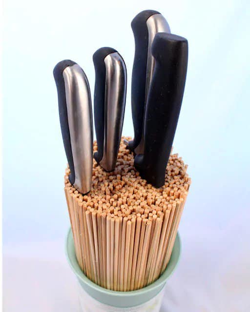 If you are not able to afford the expensive knife holders made up of glass and marble, then you need not worry about it because you can hold the bamboo sticks filled up in the jar for the same.