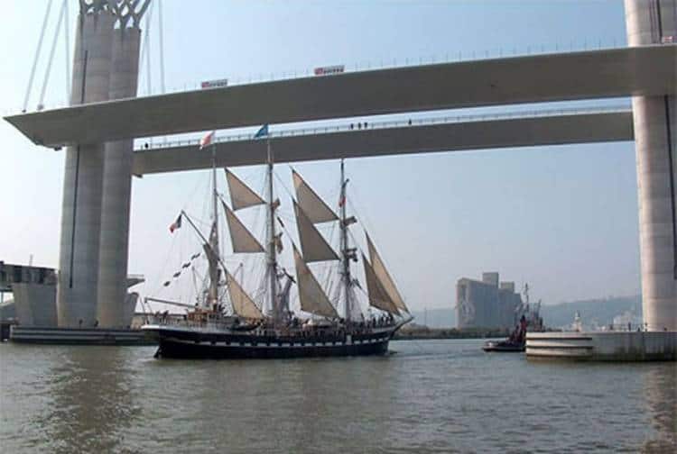 This one of the unique bridges because only three arcs have been used. These arcs are made of extremely high strength steel alloy in order to hold the bridge together. This bridge was completed in 2002.