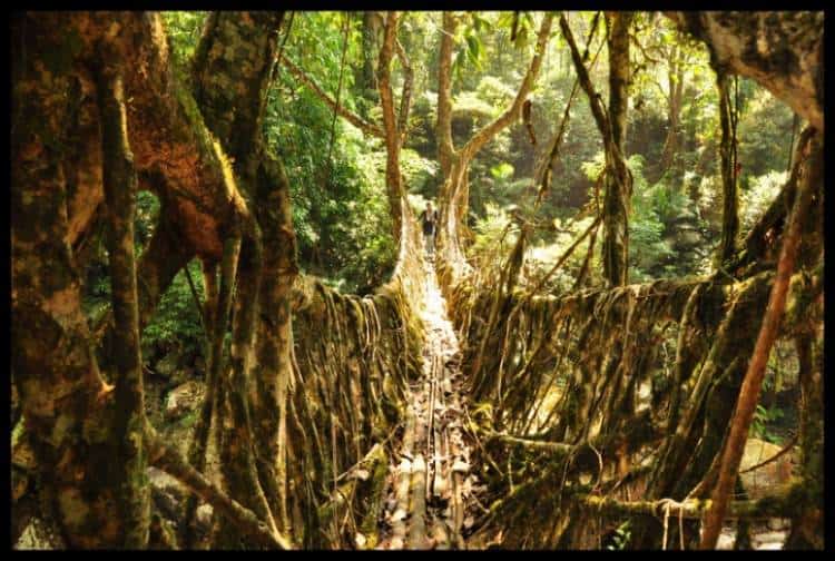 The local Khasi tribe of Cherrapunji built this wild and overgrown bridge in Nongriat village of Cherrapunji. The bridge has been constructed using only natural things which make the construction cost of the bridge zero.