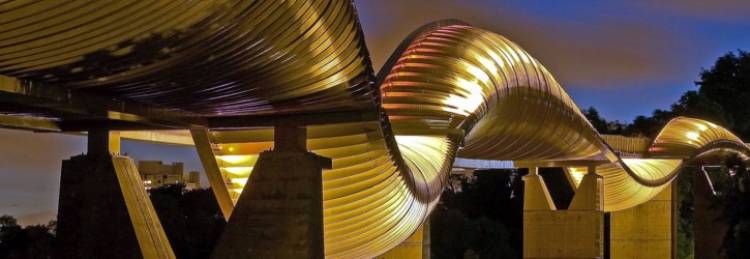 This bridge is located in one of Asia’s fastest-growing economies, Singapore. This is one of the coolest bridge, the form, the structure, and the lighting looks really cool especially at night.