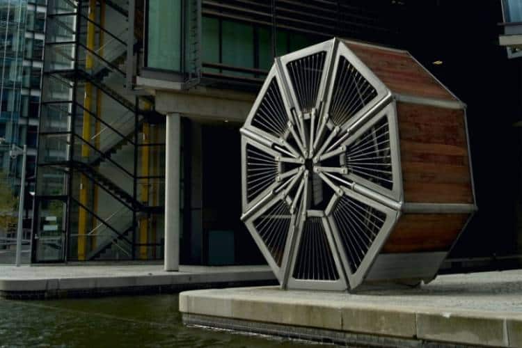 This is the rolling bridge in the UK. Whenever someone needs to pass from it, it rolls over the Grand Union Canal and then rolls back allowing the boats to pass from there.