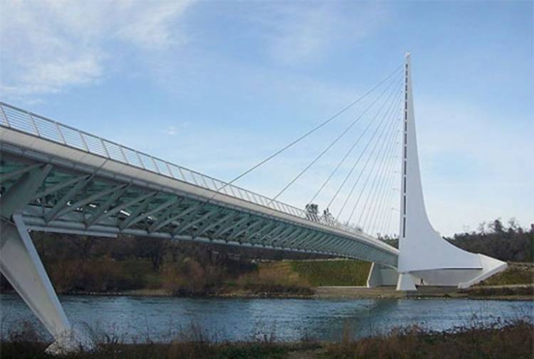 The Sundial Bridge was designed by a Spanish Architect for pedestrians only. This bridge crosses the Sacramento River in the Turtle Bay Exploration Park. This is the only bridge of its kind which makes its design unique.