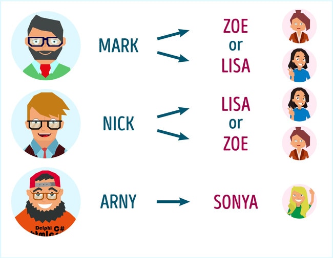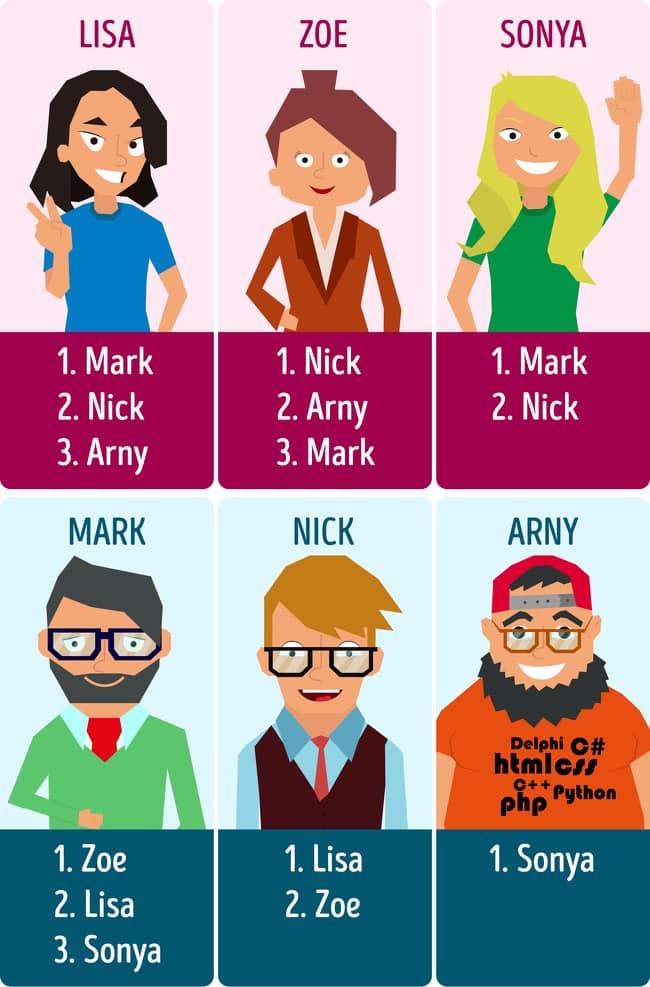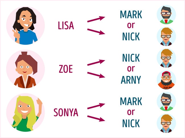 Each member of the friend’s group would know that what is the priority of them for each other group member. They know what the traits that they want in their potential partner are. There might be two girls who like all three men, but one might do not love the other person. There might be a condition when one girl does not like others.