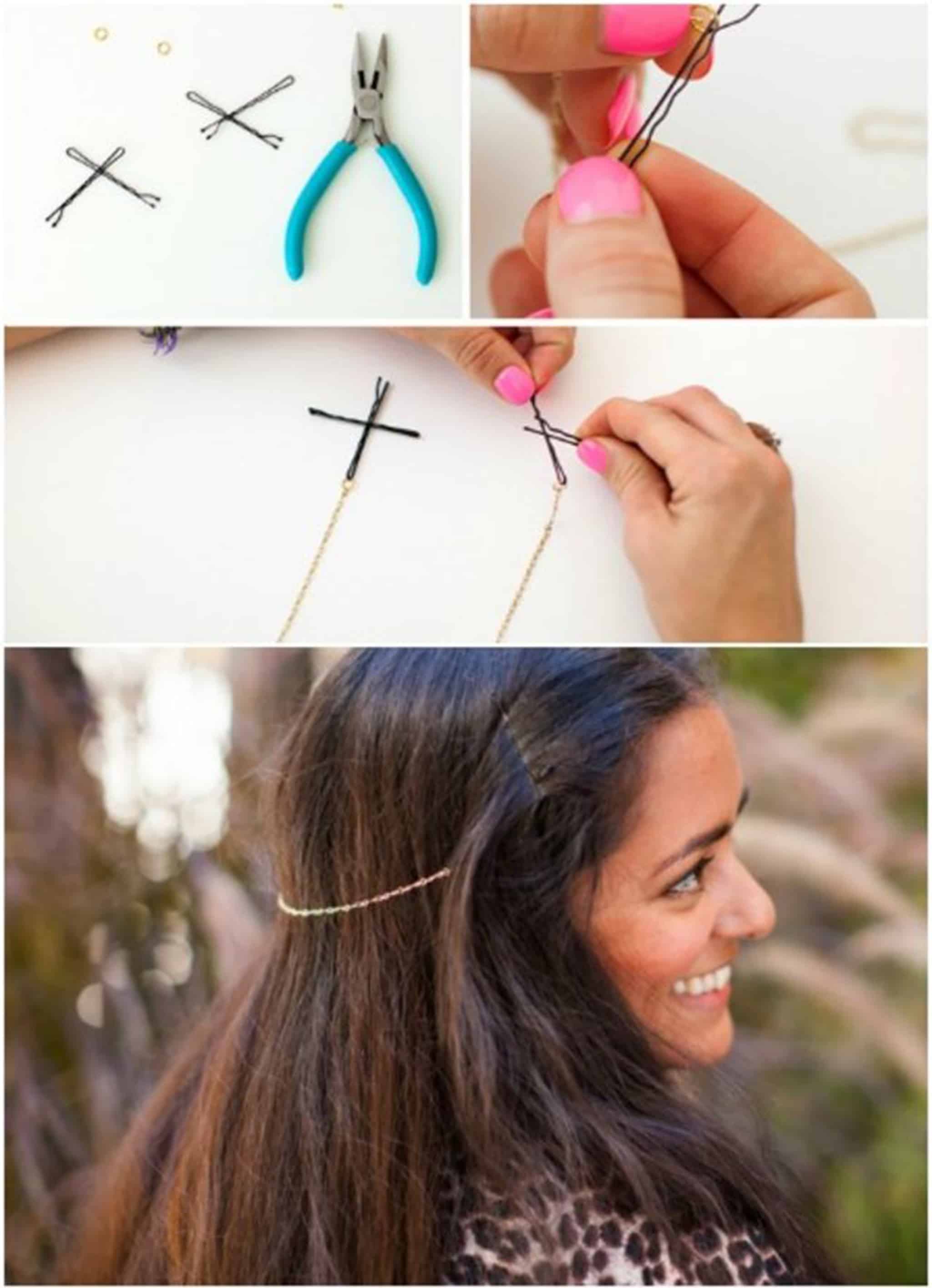 When we discussed the innovative ideas, we found that bobby pins have immense potential. You may use them to make a hashtag sign to look catchy. Just put two pins upwards and the other two upon them in the perpendicular direction.