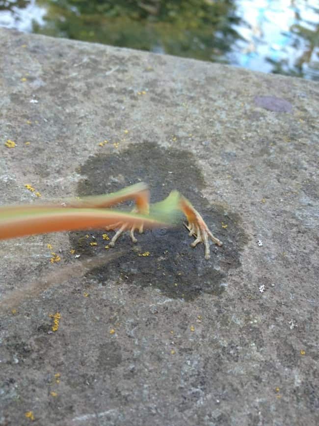This Redditor was able to get a picture of a frog jumping away and leaving away some goop on the rock. Unfortunately, no one will kiss this little frog.