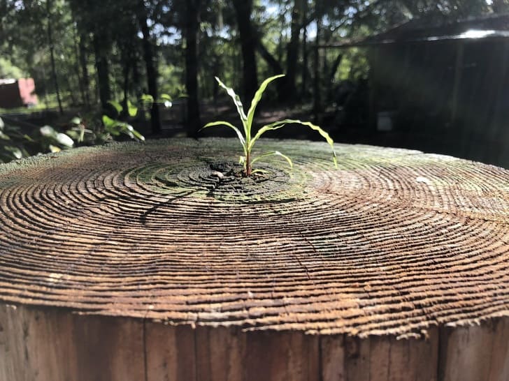 It is the big wooden pole which is very thick, and it is difficult to imagine a small plant coming out of it.