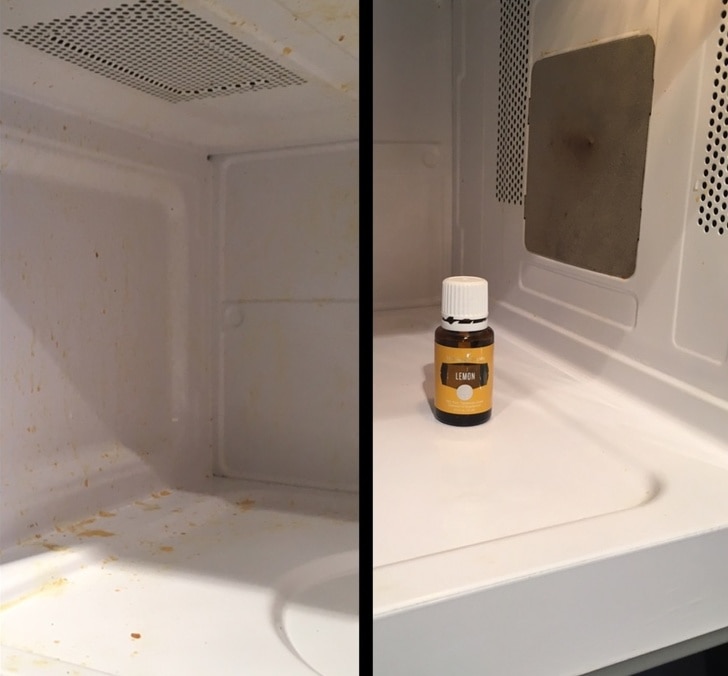 For the method, you will need two drops of the lemon essential oil and one small dish. Also, add two drops of the water and a sponge to it. Place the essential oil of lemon and water in the bowl and place it in the microwave. Turn it into the high power of heat for around one minute. Open up the microwave and clean the surface with the help of sponge inside the dish. The sponge will soak everything from inside.