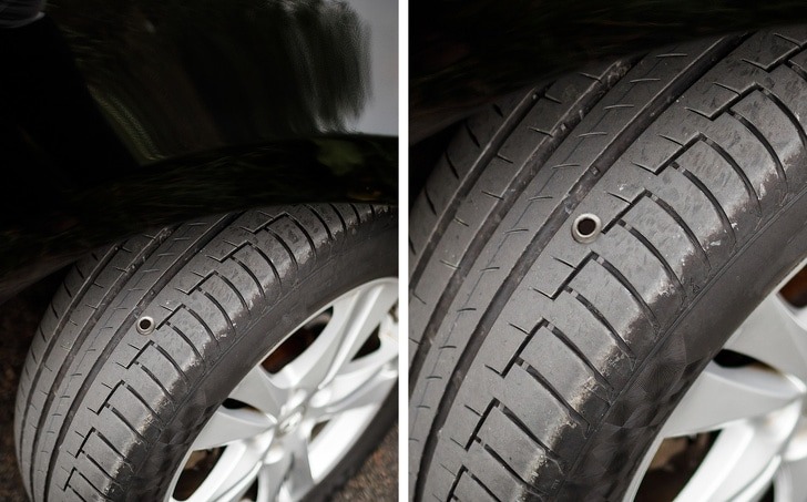 In the above photo, you will get to see the tube in the tire. You can close the hole in the tire made by the screw, and you can drive your car a long way.