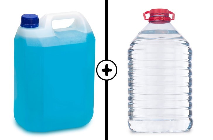 - You have to mix 0.5 gallons of anti-freeze with 0.25 gallons of distilled water.