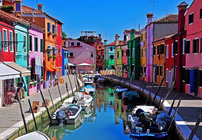 Via Galuppi, Burano, Italy: – If you are looking for one of the most colorful, romantic and scenic destinations for your holidays; it is a perfect destination you can go along with. The houses of this place are usually painted with Technicolor in order to prevent them during fog season.