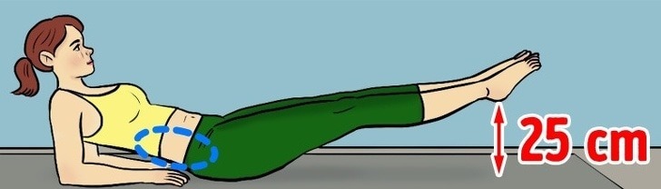 You need to lift your upper body and the elbows must be beneath the shoulders such that your forearms and the upper arm should make the angle of at least ninety degrees. Make sure to tighten your body while you raise your legs such that your heels must be at least 25 cm above from the ground. Lower these feet back without even touching the floor. Kep is repeating the steps for at least fifteen times.