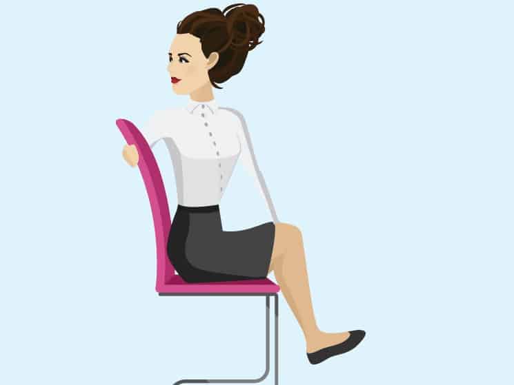 Your back should be straight while performing the activity. You need to sit on a chair by not touching your back with the chair. Put your behind the back as shown.
