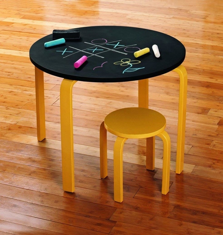 If in your house you have small children then your house is full of the drawing boards. You need to pick up a can of the chalkboard paint and draw something of the scratched base of the table. It turns surface black and washable.