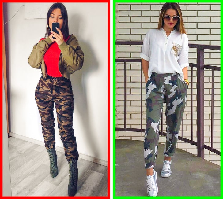 Heels are not the best combination with the military shade clothes. Instead, it looks vulgar with it. Even if you are planning for the short dress with the same color then also it would not look good. With the pants, these heels look silly.