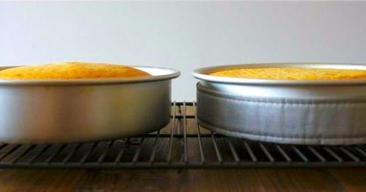 Well, no one wants to cook a dome-shaped cake in their kitchen. And here we are with the trick for it. You need to wrap the form the baking with the help of a strip of wet and durable cloth. Even you can use a towel instead of fabric. And now with the trick, it has become to bake a flat cake of biscuits.