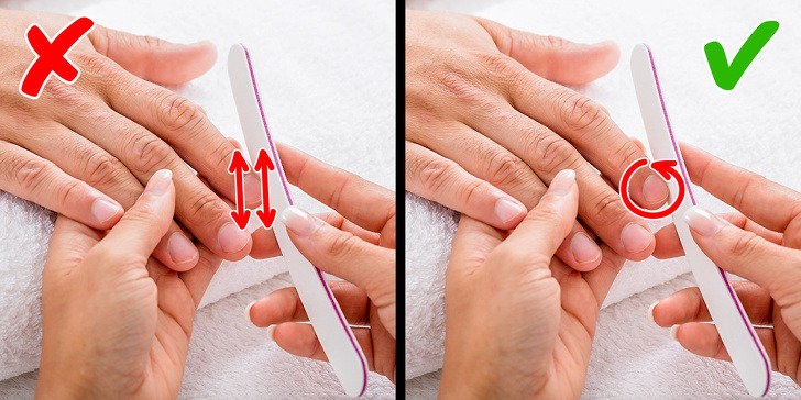 You should fill your nails in the circular motion. With filling back and forth, your nails become weaker. To prevent your nails, you can also fill them in one direction. And this will also save your money to spend on the recovery of weaker nails.