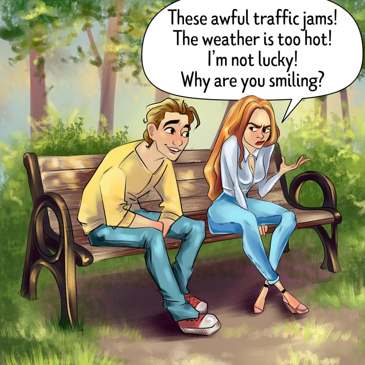 You must ask the partner to stop complaining and start thinking positively in a pleasant way. If you do not find such topics, then the whiner would get back to his hobby or even disappear from your life.