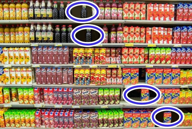 Now you can see the shelves of juice for that example. We always take the juice shelves for granted. And most of the times, the storekeeper removes some juice bars such that it would create the appearance for the high demand.