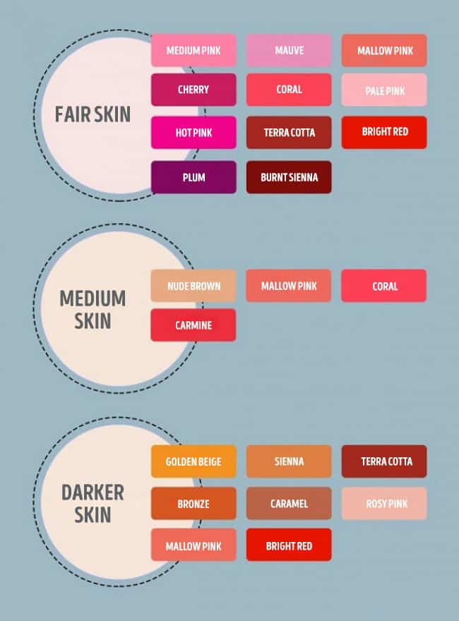 Don’t you hate it when you just fall in love with a lip shade from a distance like you could name your first-born after that shade name but when it goes on your lips it just ends up looking like a complete disaster? Well, don’t blame yourself or your pretty lips, it’s all just basic color schemes. You have to find the colors that you like and also look good on your skin tone, rather than just picking the ones that look good on certain celebrities and models. Use the above image as your guide to finding that perfect shade.