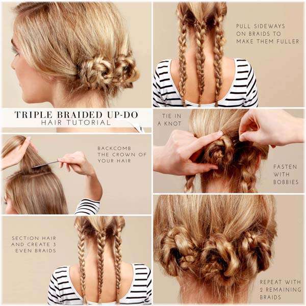 Divide hair into three sections and make peaks in every section. Roll them and capture with the pin.