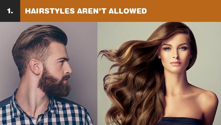 Whereas, girls have a choice of either having their hair long or tying it up in a ponytail.
