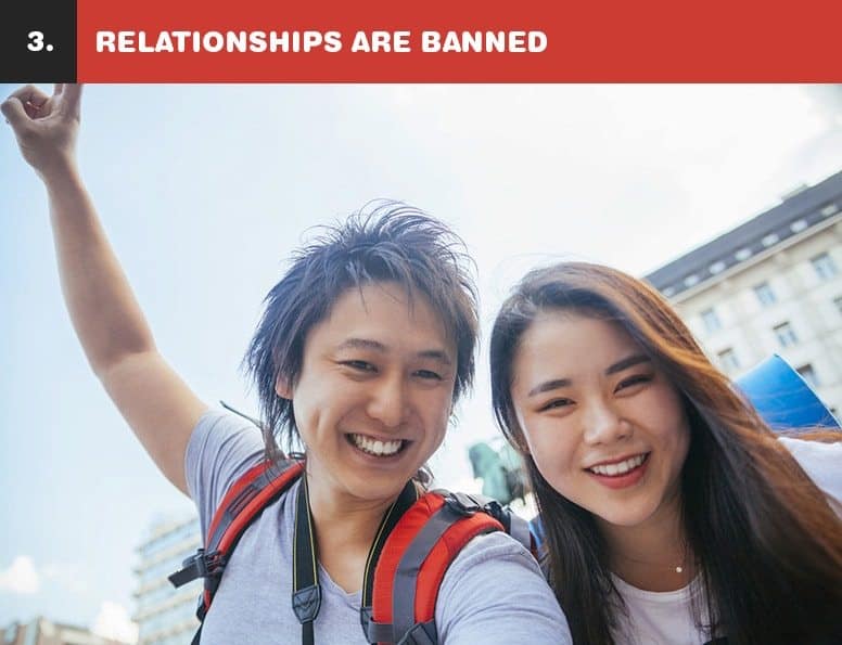 Yes, you read it right. Students are not allowed to be in a relationship when they are at school. Relationships are strictly banned in Japanese schools because the main focus of the school systems is on education. According to teachers, Japanese students are too young to think about relationships.
