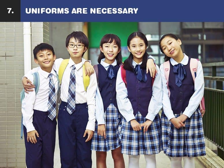 This is done to avoid any discrimination on the basis of economic status.Every school has a similar uniform in Japan. Boys wear black suits, whereas girls wear plaid skirts.