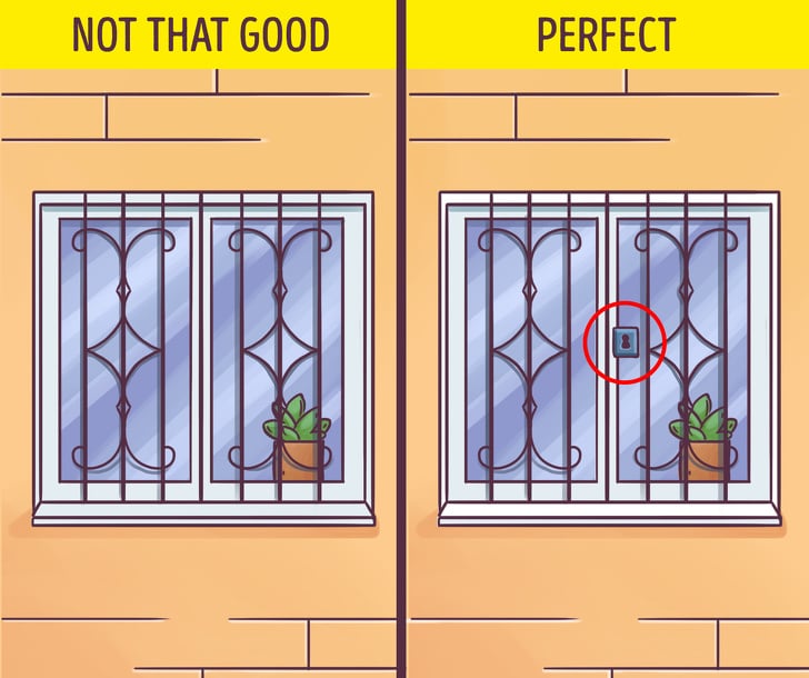 Another best way by which the thieves can enter your house is the window. Hence we will recommend you to install the grilles if your home is of the first or the second floor. Do not forget ever that you should have an escape route in case you find an emergency. The escaped course is the unlocked grilles.