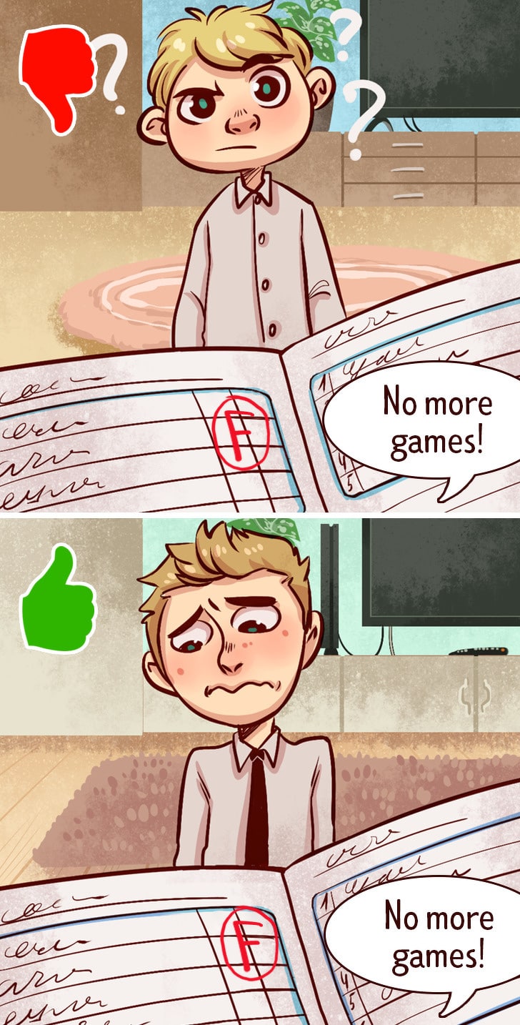 Do not provide a significant penalty for small things. The punishment for the bad grades and a broken window should not be the same. Take the child’s age and preferences into consideration while giving them a penalty. If your child loves social media then punish him by limiting the usage time of social media.