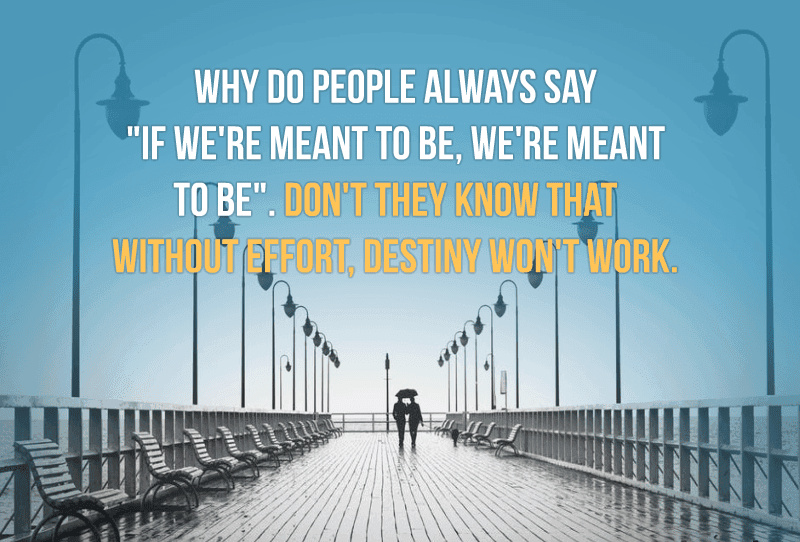 ‘Why do people always say ‘if we’re meant to be, we’re meant to be.’ Don’t they know that without effort, destiny doesn’t work?’