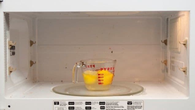 Take a bowl of water with lemon juice and put that in your microwave and left that for five minutes. Totally it will clean microwave for you.