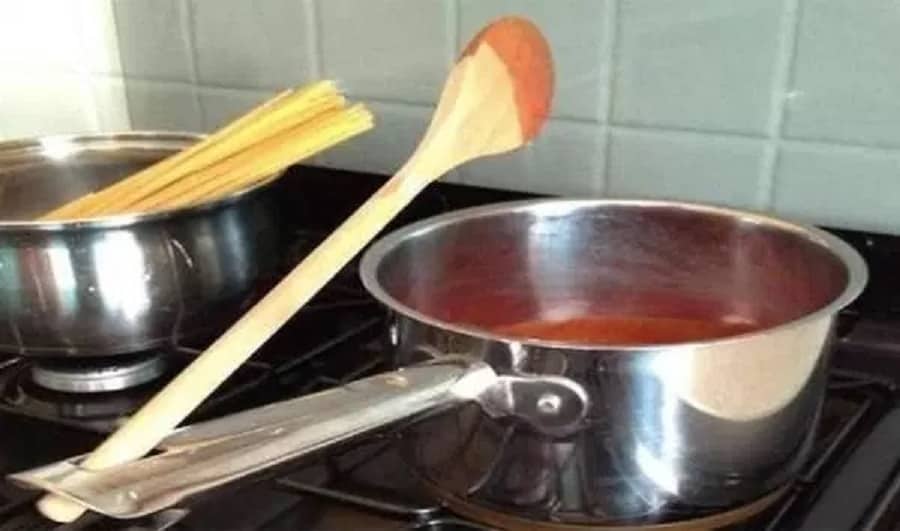 Now, keep your cooking counter clean by putting your stirring spoon in the notch of your pan and, get away with the problem of messing up the entire kitchen with that sauce covered counter.