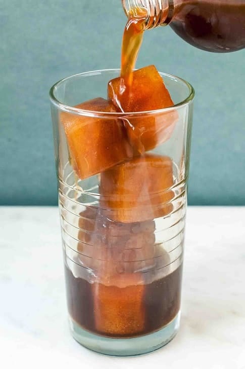 Practice putting coffee ice cubes instead of normal ice-cubes in your coffee. Pour some coffee in the ice tray and let it freeze overnight and, in the morning mix it with strong cold coffee because the watered down coffee makes the last sips undrinkable.