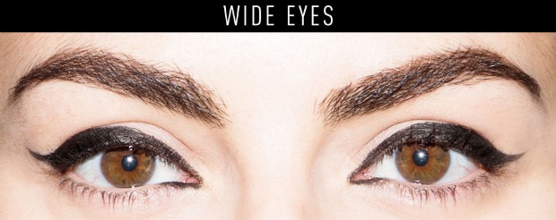 Wide eyes are supposed as an attractive piece of beauty. A fish shape line is perfect for these eyes as you can see in the picture.